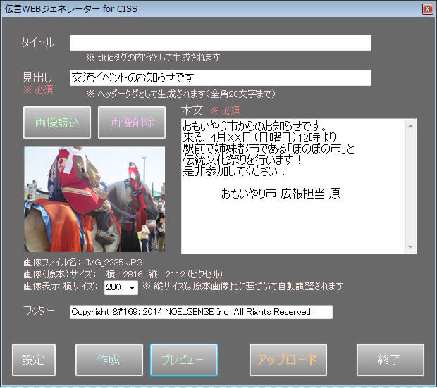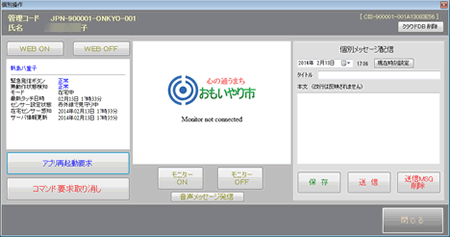 管理側アプリケーションより文字によるメッセージを送ることができます。 |