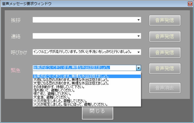 管理側アプリケーションより選択した音声メッセージを送ることができます。 |
